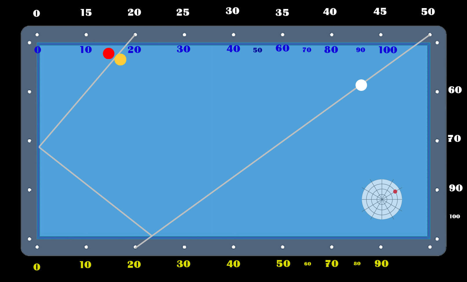 Cách xác định góc bi chủ khi áp dụng bộ nút số 50 trong 3 băng